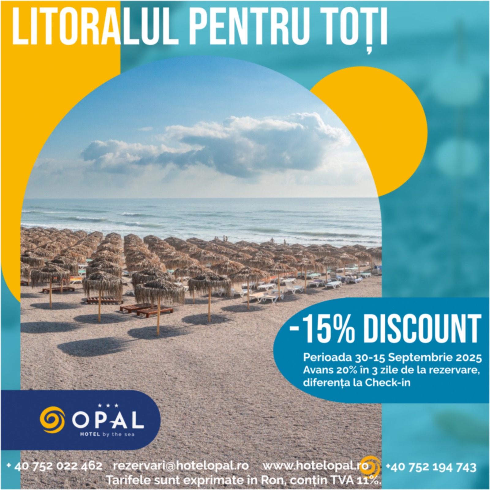 ✨ -15% DISCOUNT pentru sejururile din perioada 30 august – 15 septembrie 2025.